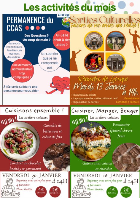 Ateliers du mois de JANVIER 2026